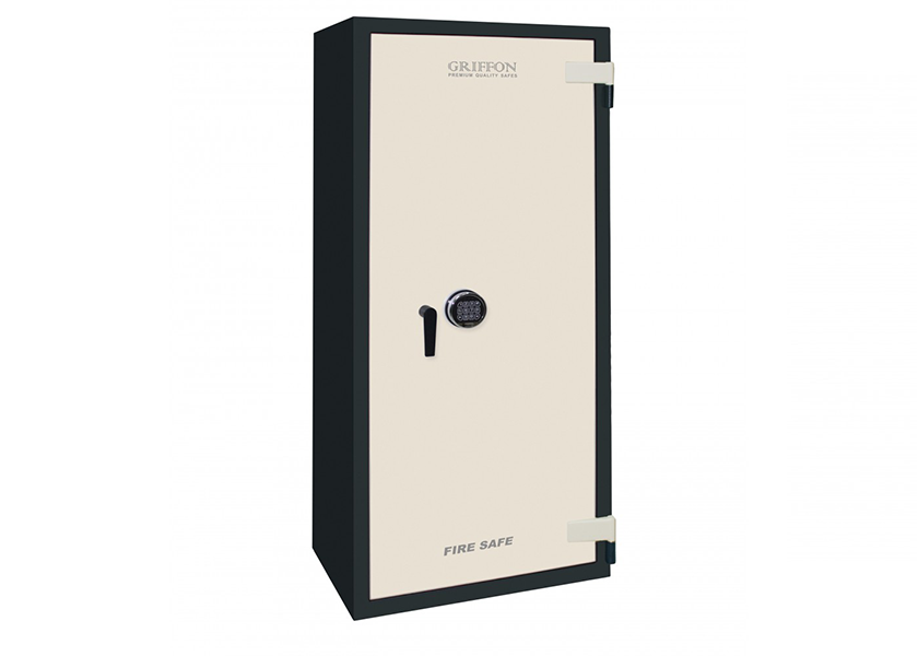 Brand-/ sikkerhedsskabe – Griffon FS157E – Brand 30min fås med nøglelås eller en elektronisk lås.