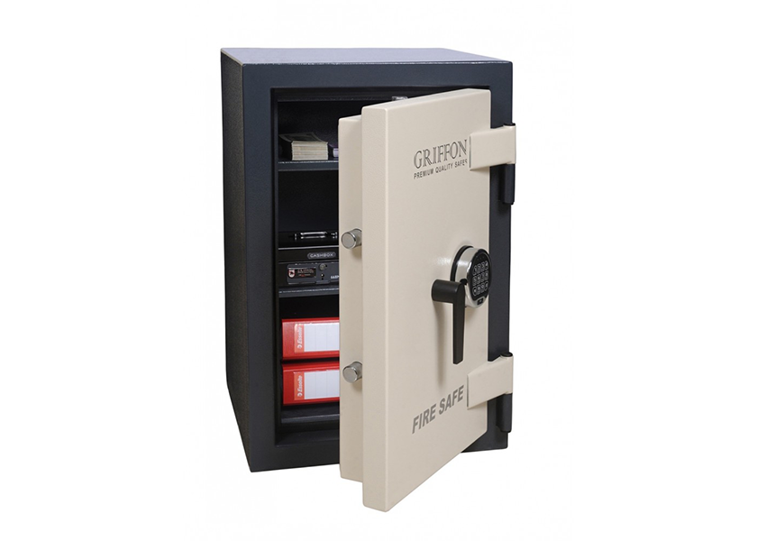 Brand-/ sikkerhedsskabe – Griffon FS70E – Brand 30min fås med nøglelås eller en elektronisk lås.